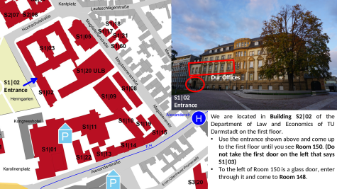 - You are now on Karolinenplatz. On your left is the entrance building of the TU Darmstadt “Karo 5”.
